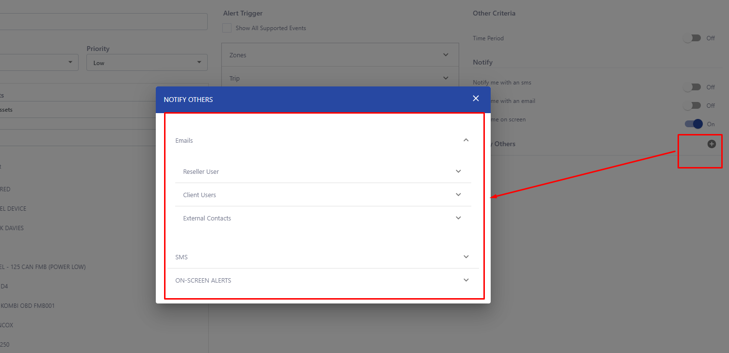 8. select the user to receive the alerts either via email, sms, push notification or onscreen