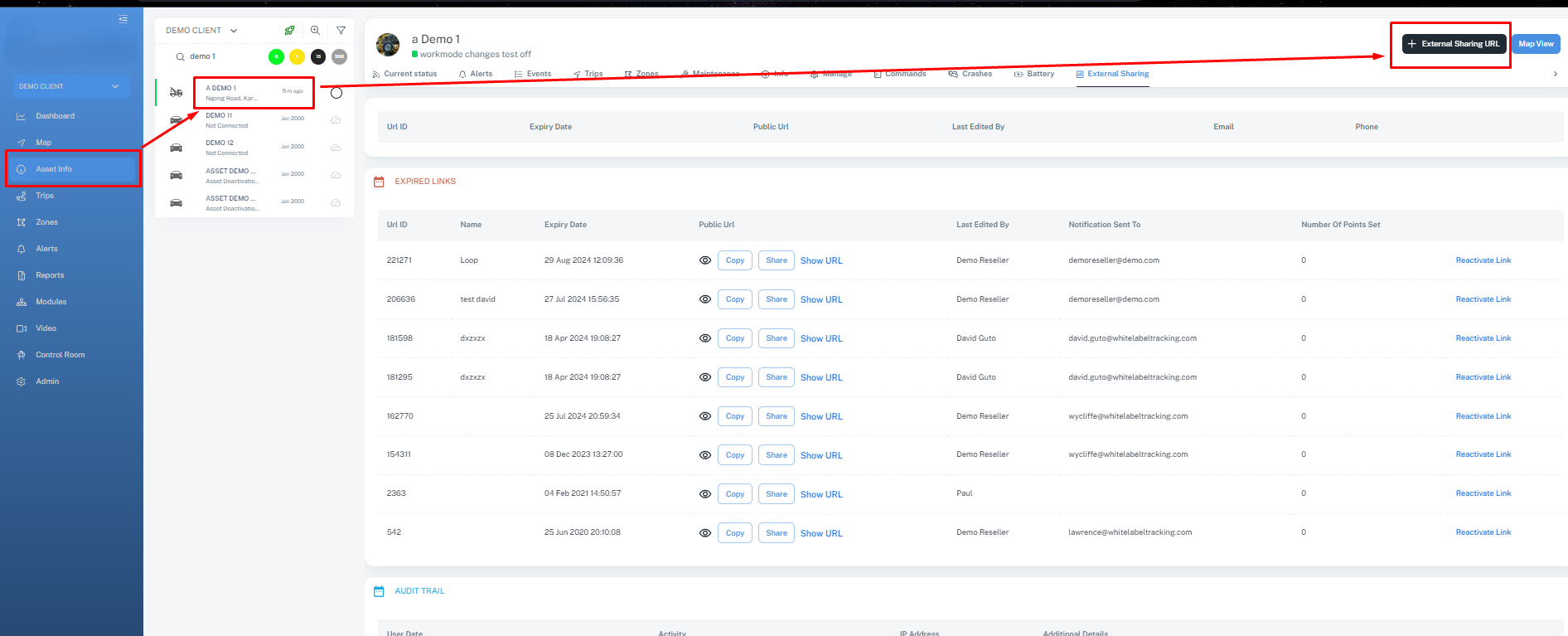 navigate to asset info>>> external sharing url