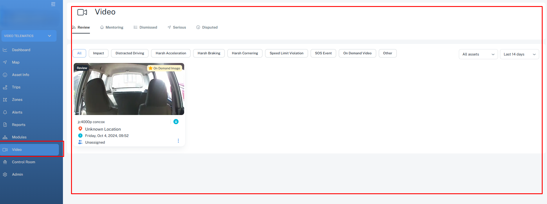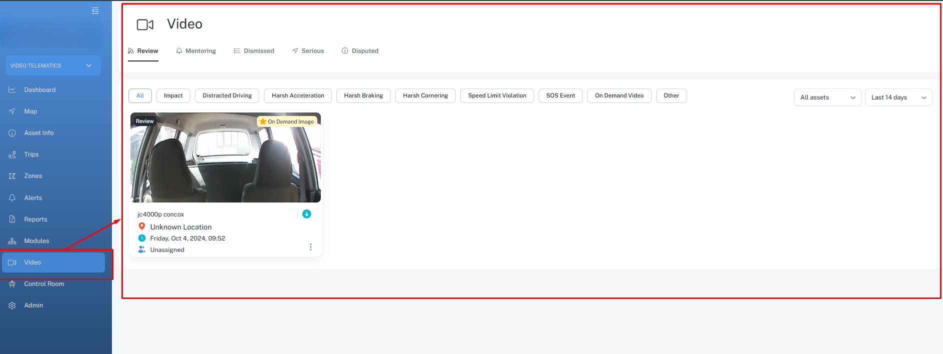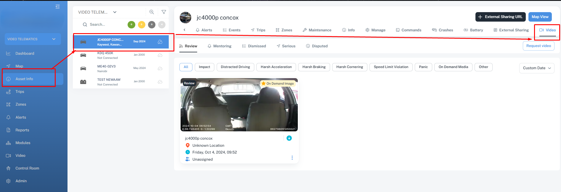 4. We have a shortcut to access video telematics from the asset bubble