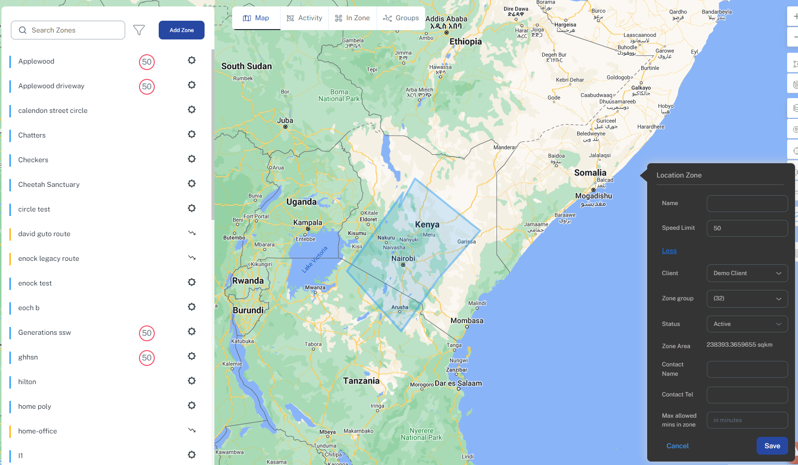 There are different types of zones, which all have different uses (Zones are also known as geo-zones or geo-fences)